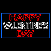 Double Stroke Happy Valentines Day With Blue Border Neontábla